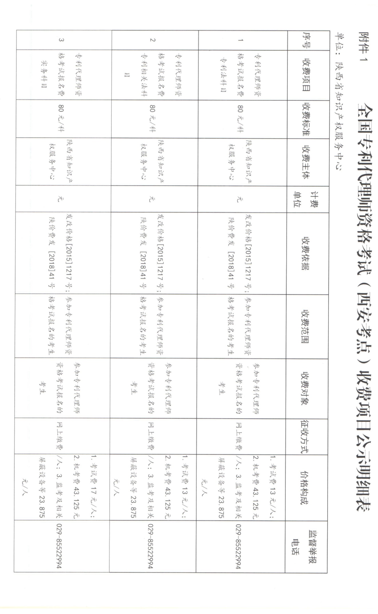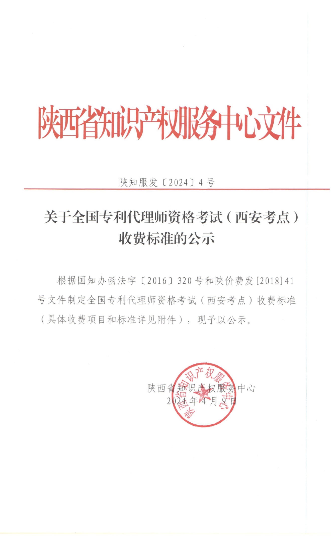 关于全国专利代理师资格考试(西安考点)收费标准的公示