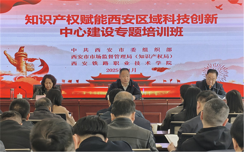 为深入学习贯彻党的二十届四中全会精神和习近平总书记关于知识产权和食品安全工作重要论述,系统学习党中央关于强化知识产权保护、赋能新质生产力发展的最新要求,11月17日上午,由西安市委组织部、西安市市场监督管理局共同举办的2025年“知识产权赋能西安区域科技创新中心建设”专题培训班,在市级干部教育培训西安铁路职业技术学院基地开班,西安市政府副秘书长杨佐涛出席开班仪式并讲话。西安市市场监督管理局(知识产权局)党委书记、局长郝生旺主持会议,西安铁路职业技术学院院长陈红出席会议并致辞。